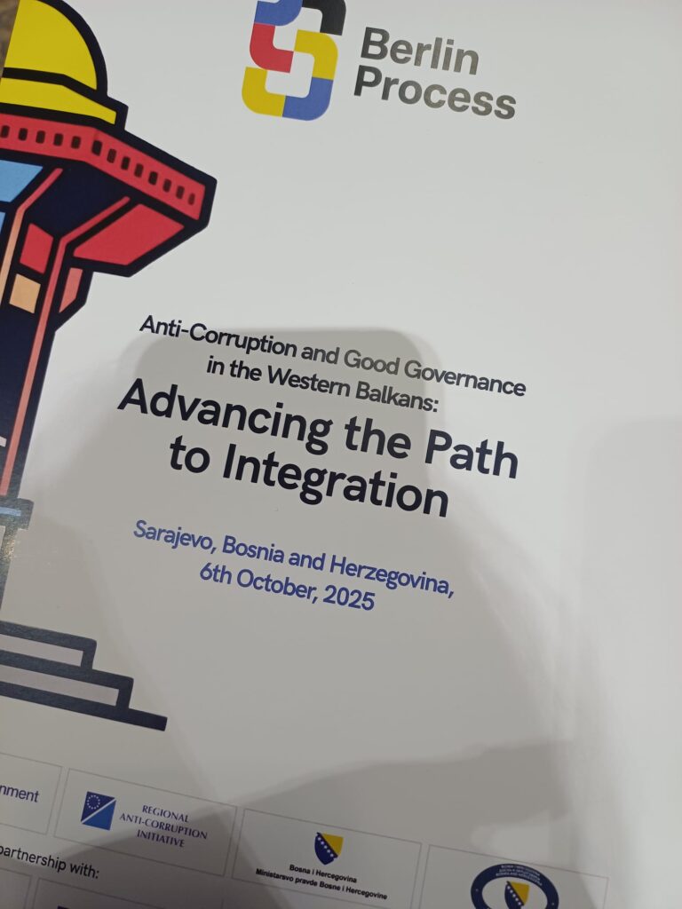Alcuni rappresentanti del progetto qAID (tra cui Beatrice Rigon, in rappresentanza del CSSC) hanno partecipato ad un importante evento regionale organizzato dalla Regional Anti-Corruption Initiative (RAI) in Sarajevo il 6 ottobre 2025. L’evento, “Anti-corruption and Good Governance in the Western Balkans: Advancing the Path to Integration” è stato organizzato nell’ambito del Berlin Process e si è focalizzato sul rafforzamento dell’integrità e dei sistemi anticorruzione nei Balcani occidentali. L’evento ha riunito ministri, esperti, partner internazionali, e rappresentanti della società civile per condividere esperienze e promuovere strumenti innovativi per promuovere trasparenza e responsabilità.